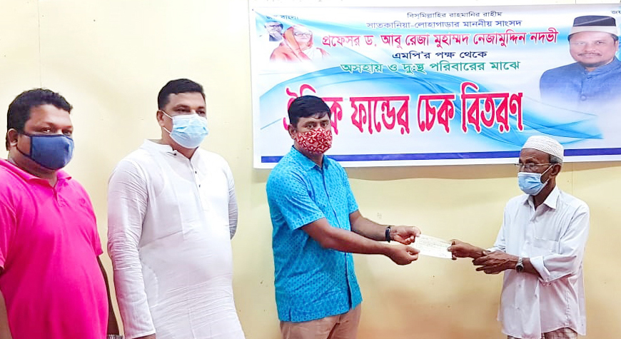 লোহাগাড়া উপজেলার বিভিন্ন ইউনিয়নের সুবিধাভোগী দূঃস্থ ও অসহায়দের মানুষের মাঝে চেকগুলো তুলে দেন উপজেলা নির্বাহী কর্মকর্তা আহসান হাবিব জিতু। উপস্থিত ছিলেন এমপি ড. নদভীর একান্ত সচিব ও সাতকানিয়া উপজেলা আওয়ামী লীগ নেতা এরফানুল করিম চৌধুরী, লোহাগাড়া জাতীয় শ্রমিকলীগের সাধারণ সম্পাদক নুরুল হক নুনু, লোহাগাড়া উপজেলা মহিলা আওয়ামী লীগের সাধারণ সম্পাদক কহিনুর আক্তার, যুবলীগ নেতা ও স্থানীয় সাংসদের এডমিন দেলোয়ার হোসেন বেলাল, ছাত্রলীগ নেতা মোহাম্মদ আলমগীর প্রমুখ।