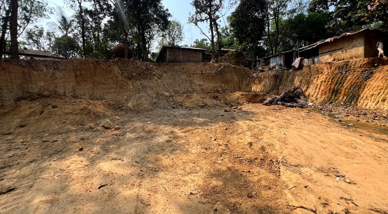 জানা যায়, উল্লেখিত স্থানে টিলার মাটি কেটে নেয়ায় ঝুঁকিতে রয়েছে পার্শ্ববর্তী ৬ পরিবারের বসতঘর। গত ১৯ মার্চ এ ব্যাপারে প্রতিকার চেয়ে ক্ষতিগ্রস্ত মোহাম্মদ আনোয়ার (২১) উপজেলা নির্বাহী কর্মকর্তা বরাবরে লিখিত অভিযোগ করেছেন। এতে স্থানীয় মোহাম্মদ জসিম উদ্দিন ও মোহাম্মদ কফিল উদ্দিন নামে দুজনকে অভিযুক্ত করা হয়েছে।